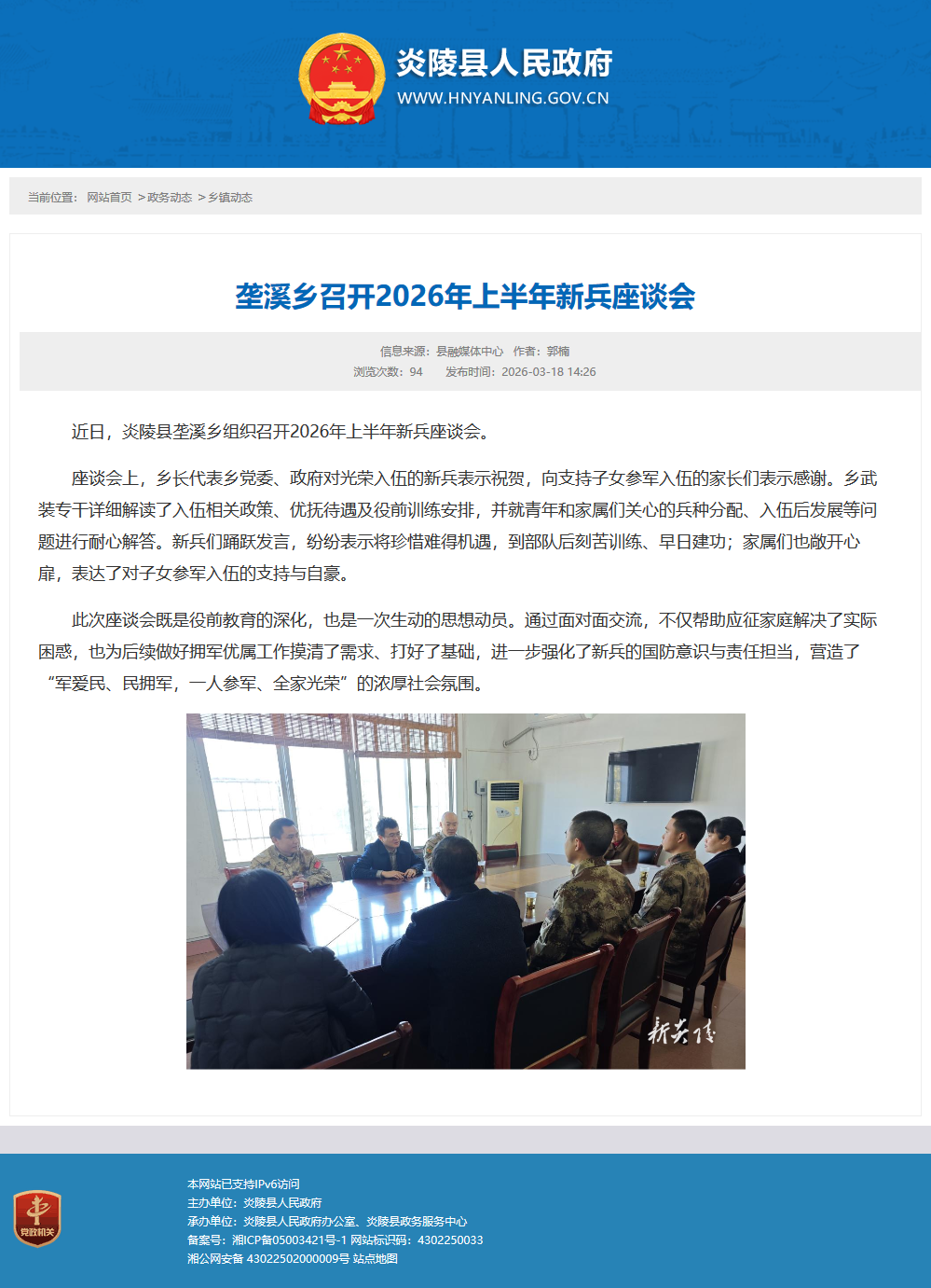 近日,炎陵县垄溪乡组织召开2026年上半年新兵座谈会。