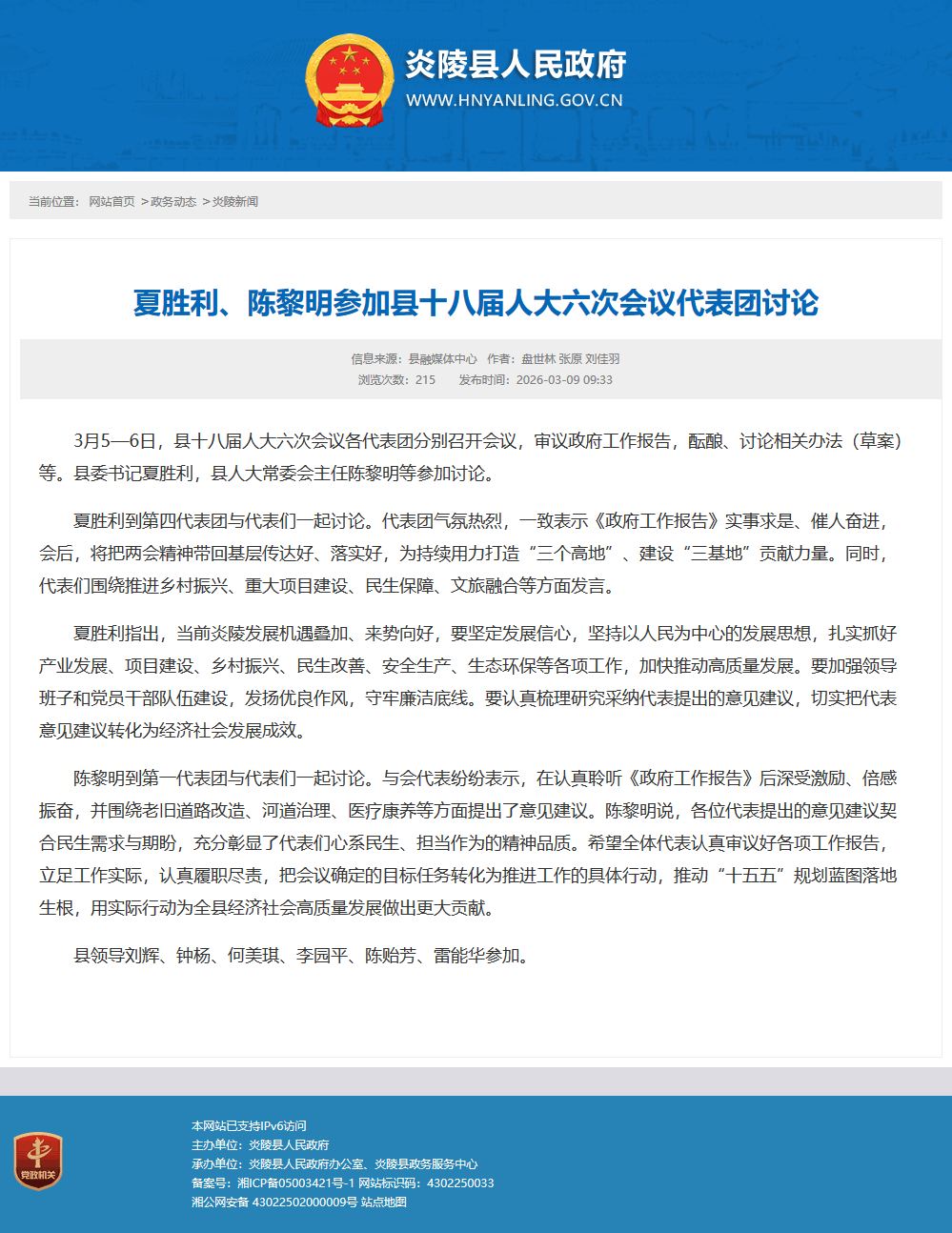 夏胜利到第四代表团与代表们一起讨论。代表团气氛热烈,一致表示《政府工作报告》实事求是、催人奋进,会后,将把两会精神带回基层传达好、落实好,为持续用力打造“三个高地”、建设“三基地”贡献力量。同时,代表们围绕推进乡村振兴、重大项目建设、民生保障、文旅融合等方面发言。