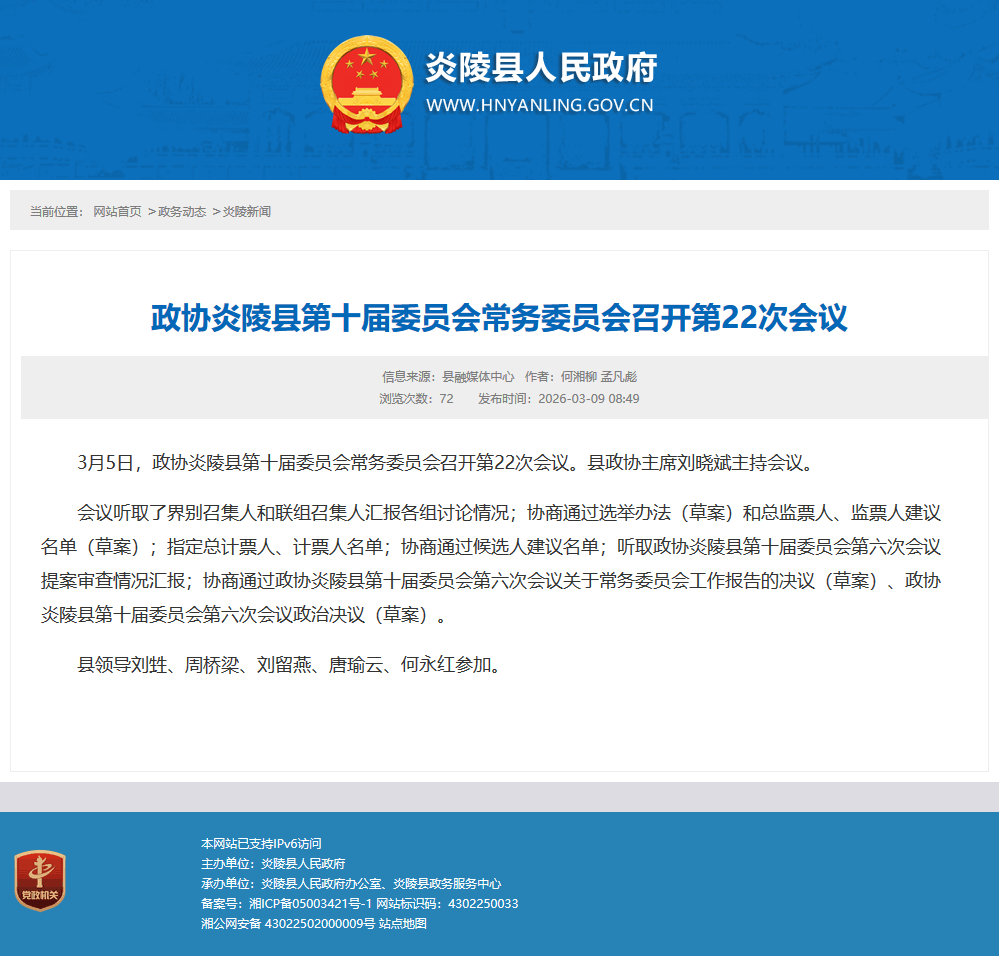 时间:2026-03-09 08:49:00 来源: 炎陵县人民政府 来源截图