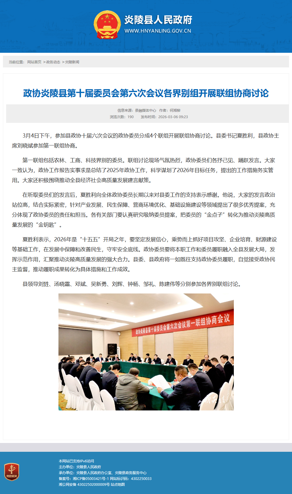 夏胜利表示,2026年是“十五五”开局之年,要坚定发展信心,乘势而上抓好项目攻坚、企业培育、财源建设等基础工作,在发展中保障和改善民生,守牢安全底线。政协委员要将本职工作和委员履职融入全县发展大局,发挥示范作用,汇聚推动炎陵高质量发展的强大合力。县委、县政府将一如既往支持政协委员履职,自觉接受政协民主监督,推动履职成果转化为具体措施和工作成效。