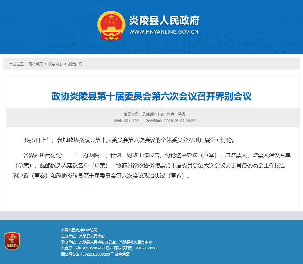 时间:2026-03-06 09:22:00 来源: 炎陵县人民政府 来源截图