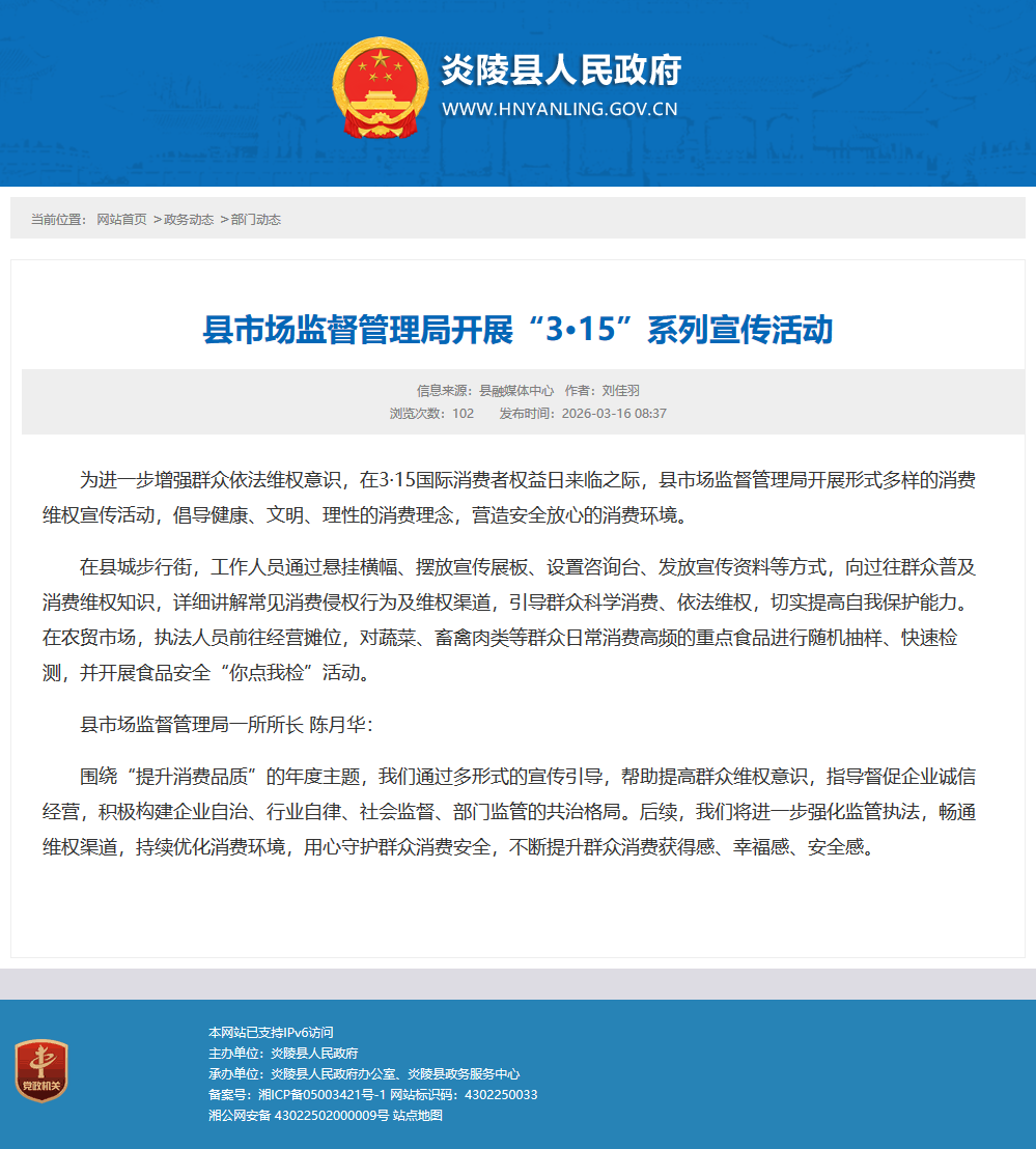 为进一步增强群众依法维权意识,在3·15国际消费者权益日来临之际,县市场监督管理局开展形式多样的消费维权宣传活动,倡导健康、文明、理性的消费理念,营造安全放心的消费环境。
