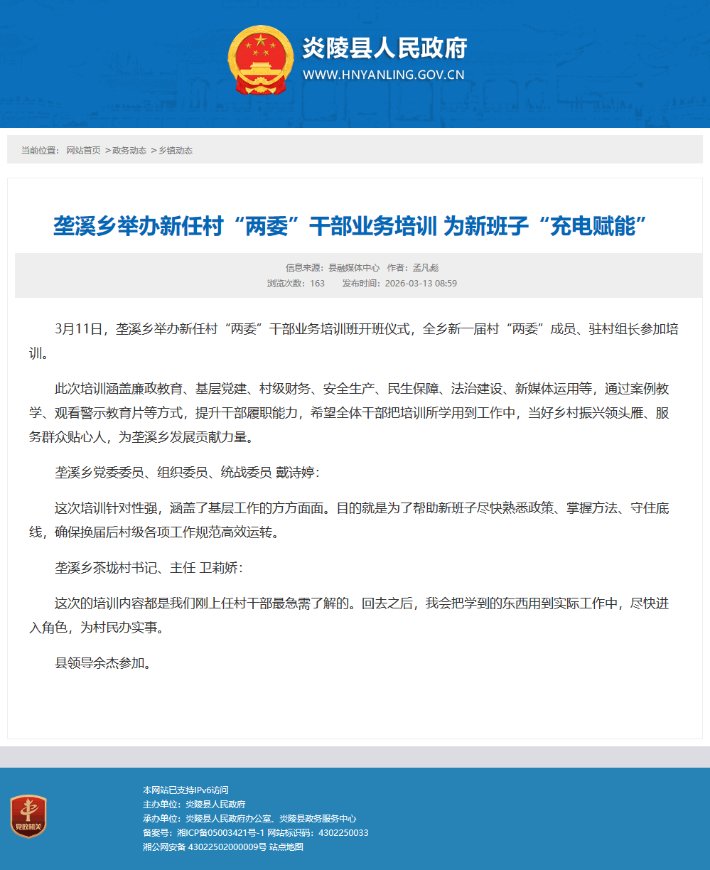 此次培训涵盖廉政教育、基层党建、村级财务、安全生产、民生保障、法治建设、新媒体运用等,通过案例教学、观看警示教育片等方式,提升干部履职能力,希望全体干部把培训所学用到工作中,当好乡村振兴领头雁、服务群众贴心人,为垄溪乡发展贡献力量。