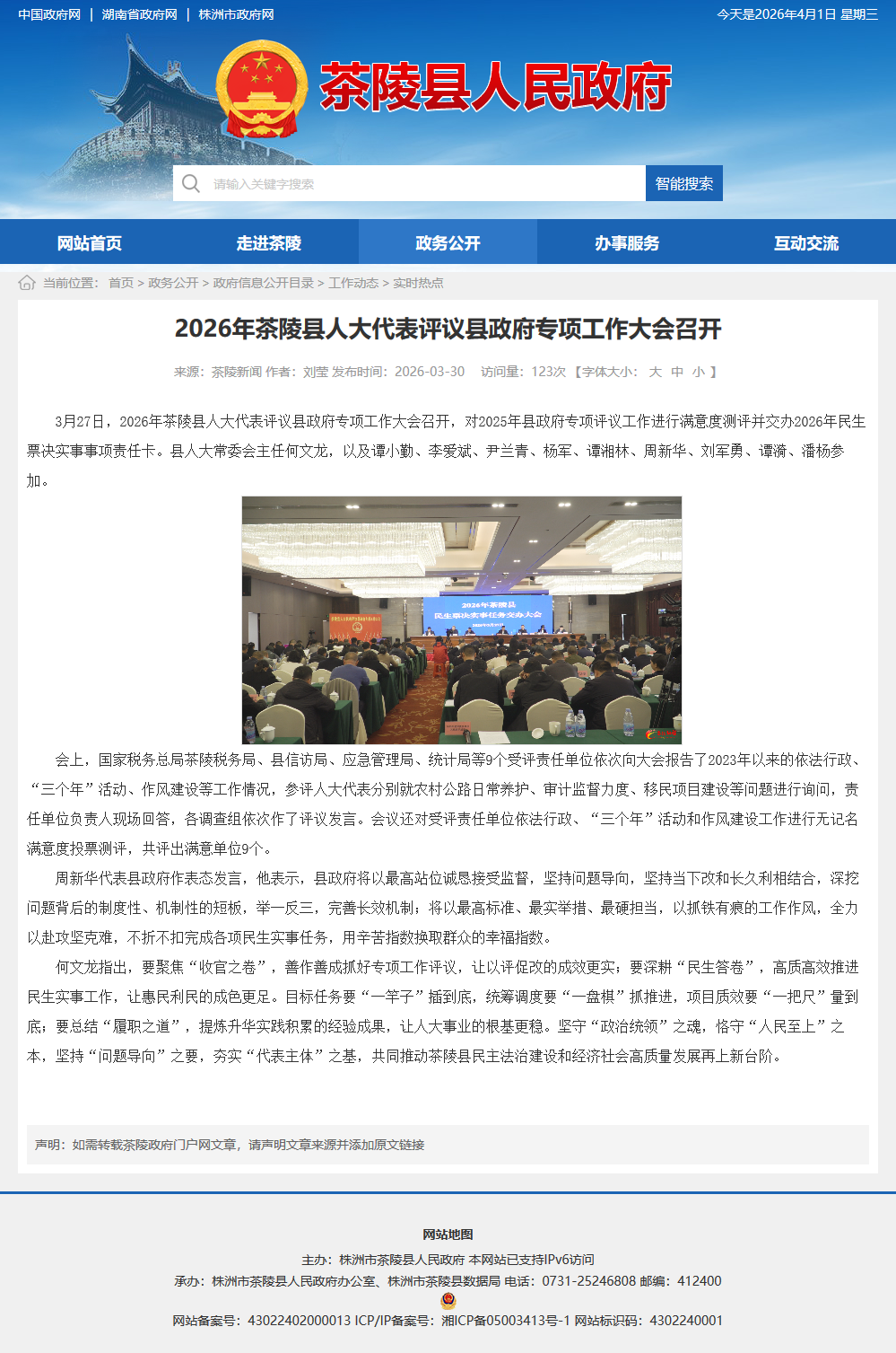 3月27日,2026年茶陵县人大代表评议县政府专项工作大会召开,对2025年县政府专项评议工作进行满意度测评并交办2026年民生票决实事事项责任卡。县人大常委会主任何文龙,以及谭小勤、李爱斌、尹兰青、杨军、谭湘林、周新华、刘军勇、谭漪、潘杨参加。