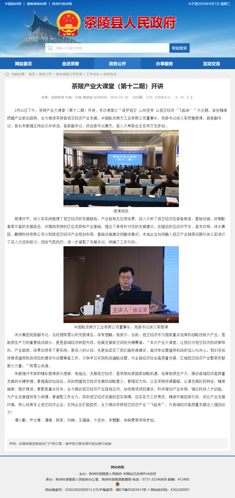3月25日下午,茶陵产业大课堂(第十二期)开讲,本次课堂以“逐梦低空 心向苍穹 让低空经济‘飞起来’”为主题,旨在精准把握产业前沿趋势,全力推进茶陵县低空经济产业发展。中国航发南方工业有限公司董事长、党委书记徐义军受邀授课,县委副书记、县长朱毅强主持会议并讲话,县委副书记、政法委书记唐杰,县人大常委会主任何文龙参加。