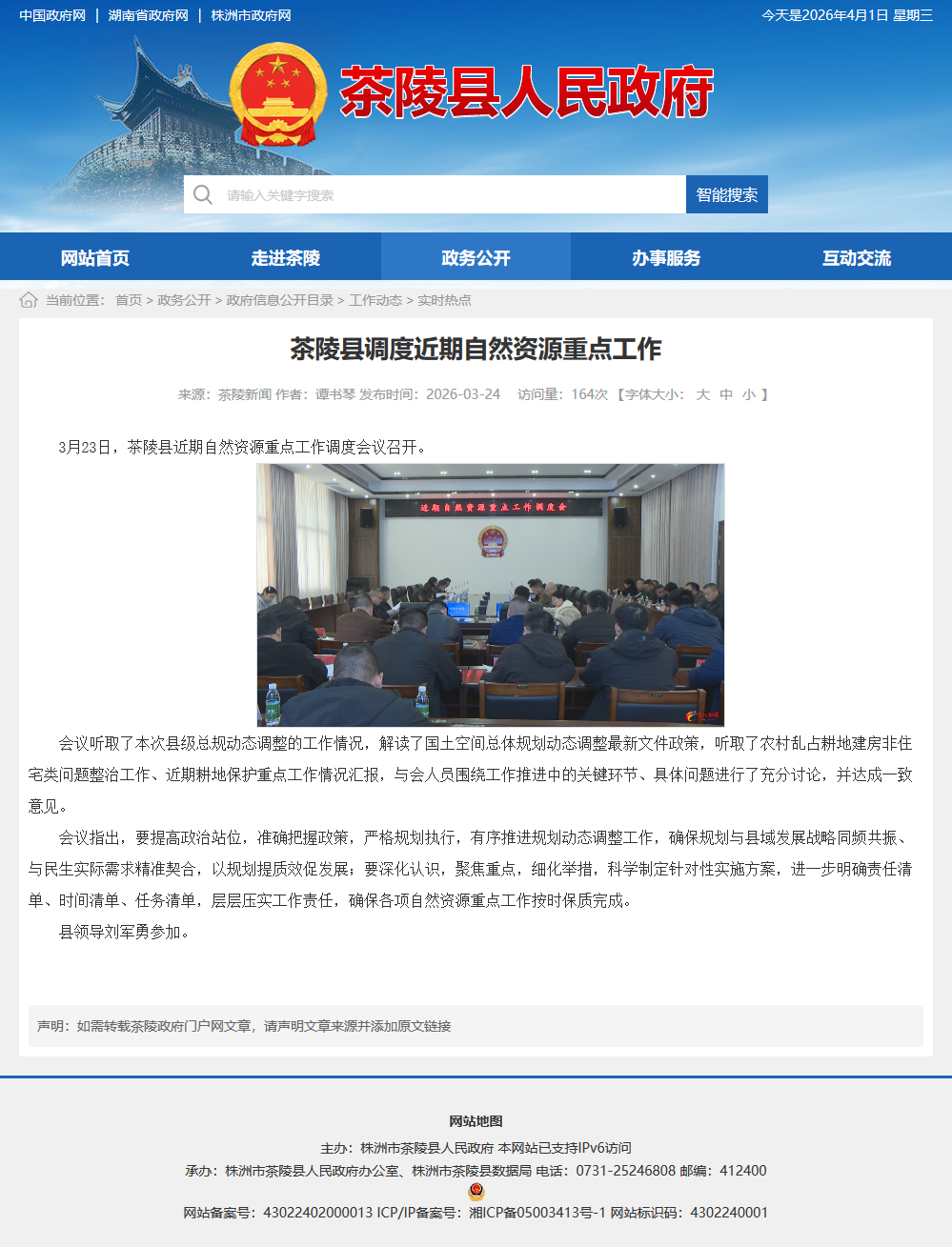 3月23日,茶陵县近期自然资源重点工作调度会议召开。