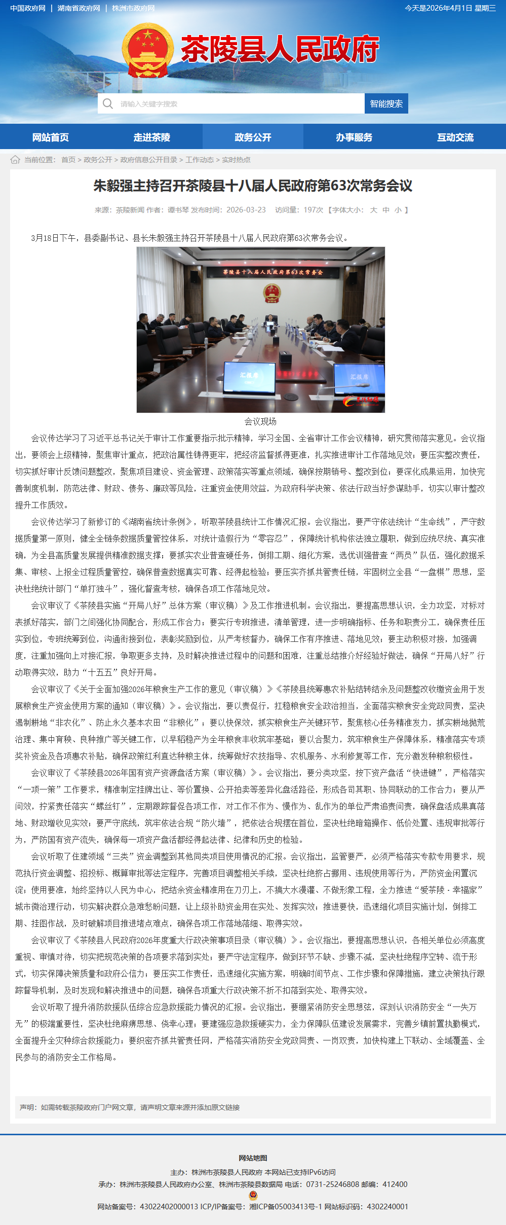 3月18日下午,县委副书记、县长朱毅强主持召开茶陵县十八届人民政府第63次常务会议。