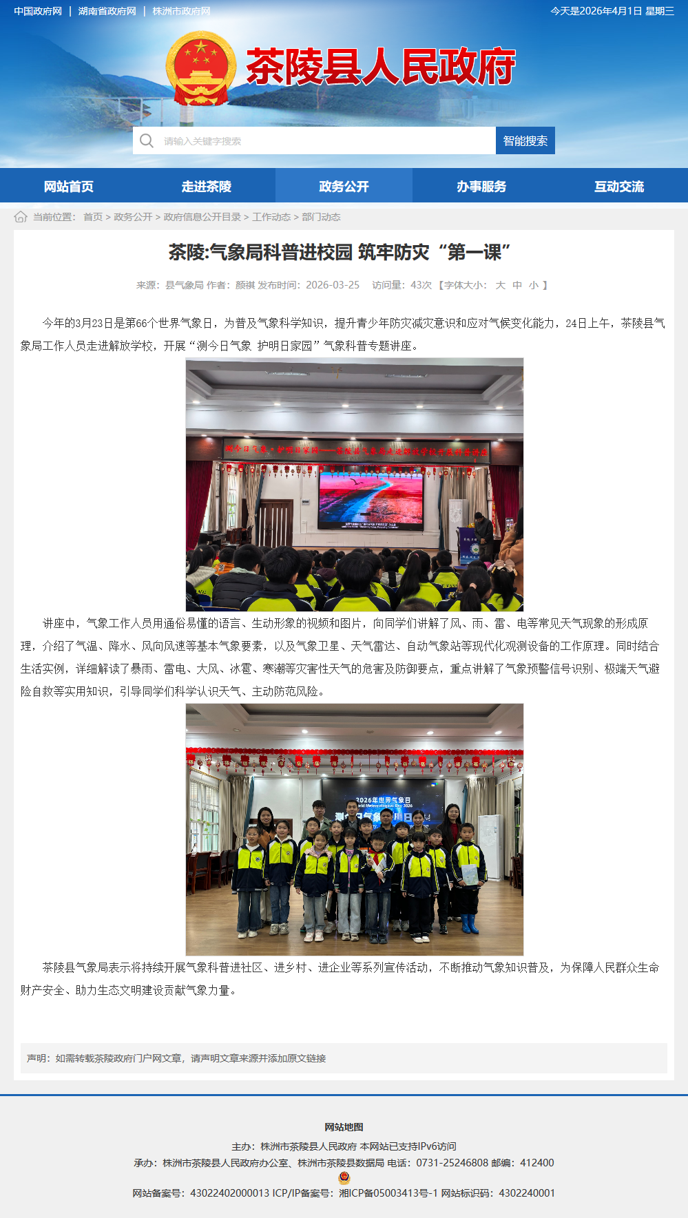 今年的3月23日是第66个世界气象日,为普及气象科学知识,提升青少年防灾减灾意识和应对气候变化能力,24日上午,茶陵县气象局工作人员走进解放学校,开展“测今日气象 护明日家园”气象科普专题讲座。