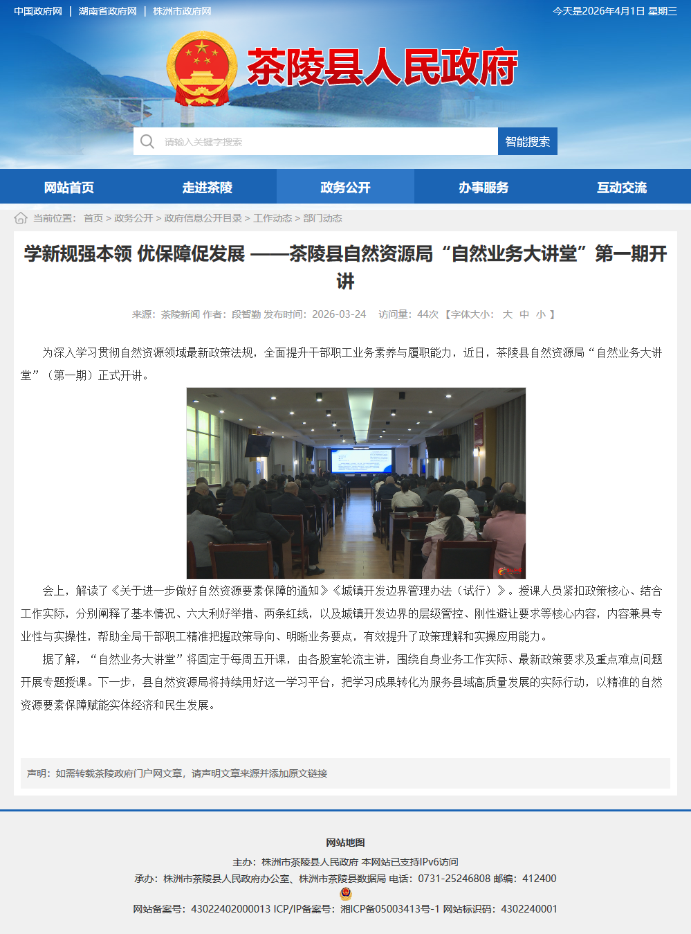 为深入学习贯彻自然资源领域最新政策法规,全面提升干部职工业务素养与履职能力,近日,茶陵县自然资源局“自然业务大讲堂”(第一期)正式开讲。
