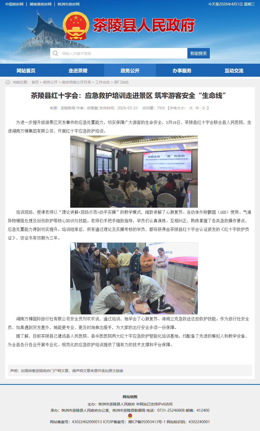 为进一步提升旅游景区突发事件的应急处置能力,切实保障广大游客的生命安全,3月19日,茶陵县红十字会联合县人民医院,走进湖南万樟集团有限公司,开展红十字应急救护培训。