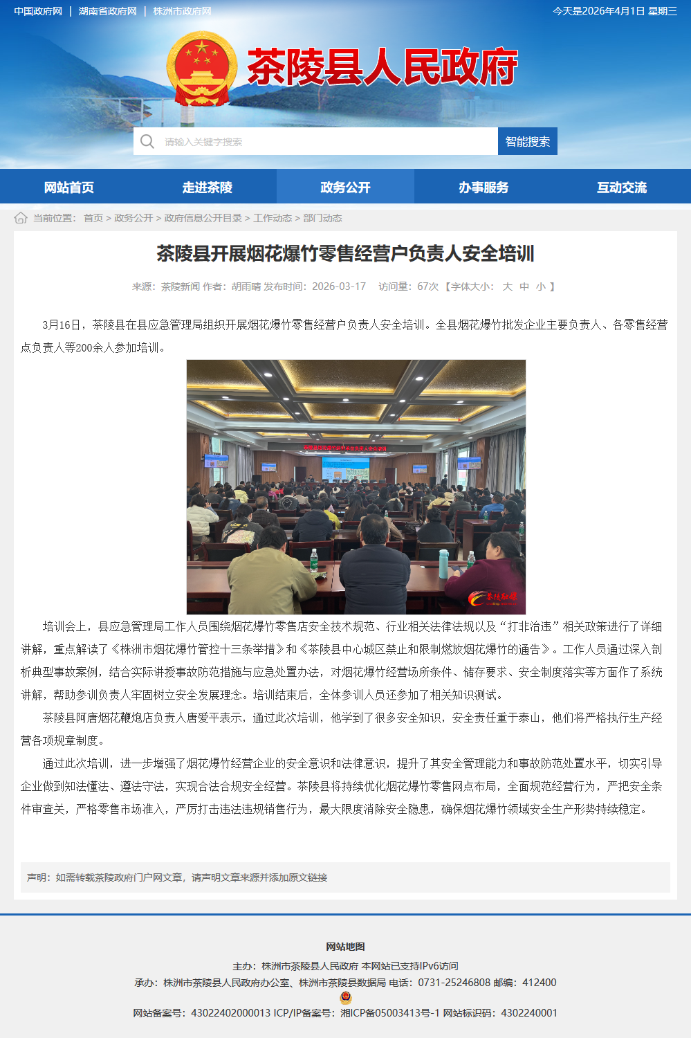 3月16日,茶陵县在县应急管理局组织开展烟花爆竹零售经营户负责人安全培训。全县烟花爆竹批发企业主要负责人、各零售经营点负责人等200余人参加培训。