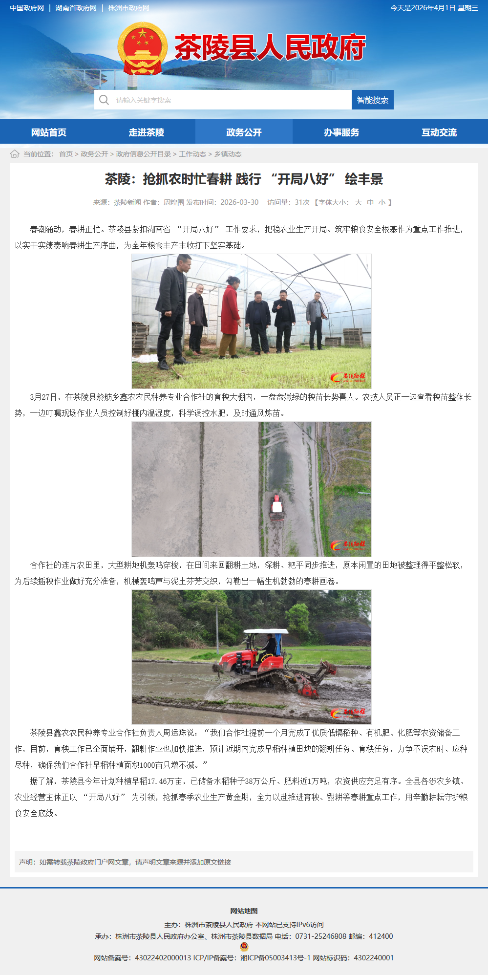 春潮涌动,春耕正忙。茶陵县紧扣湖南省 “开局八好” 工作要求,把稳农业生产开局、筑牢粮食安全根基作为重点工作推进,以实干实绩奏响春耕生产序曲,为全年粮食丰产丰收打下坚实基础。