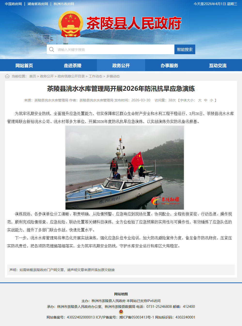 为筑牢汛期安全防线,全面提升应急处置能力,切实保障库区群众生命财产安全和水利工程平稳运行,3月26日,茶陵县洮水水库管理局联合新裕洮水公司、洮水村等多方单位,开展2026年度防汛抗旱应急演练,以实战演练夯实防汛备汛根基。