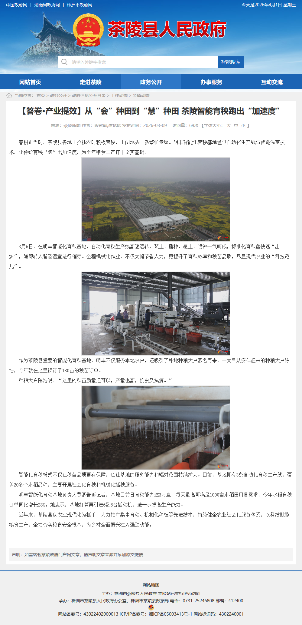 春耕正当时,茶陵县各地正抢抓农时积极育秧,田间地头一派繁忙景象。明丰智能化育秧基地通过自动化生产线与智能温室技术,让传统育秧“跑”出加速度,为全年粮食丰产打下坚实基础。