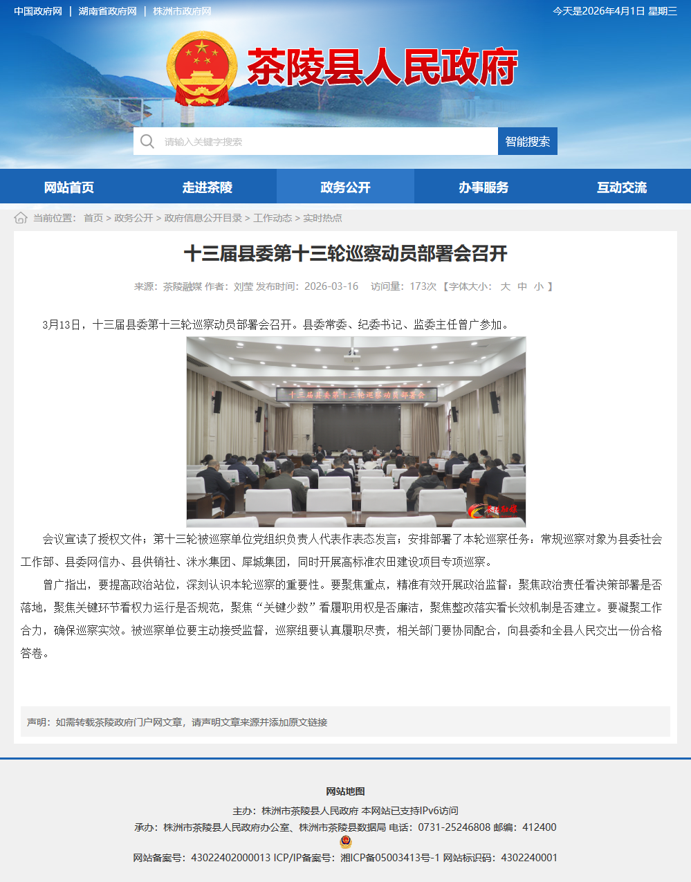 会议宣读了授权文件;第十三轮被巡察单位党组织负责人代表作表态发言;安排部署了本轮巡察任务:常规巡察对象为县委社会工作部、县委网信办、县供销社、洣水集团、犀城集团,同时开展高标准农田建设项目专项巡察。
