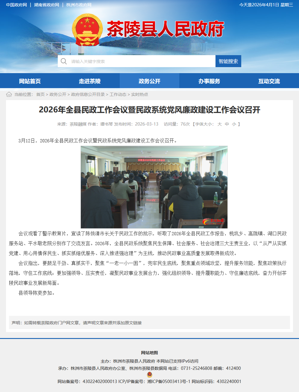 3月12日,2026年全县民政工作会议暨民政系统党风廉政建设工作会议召开。