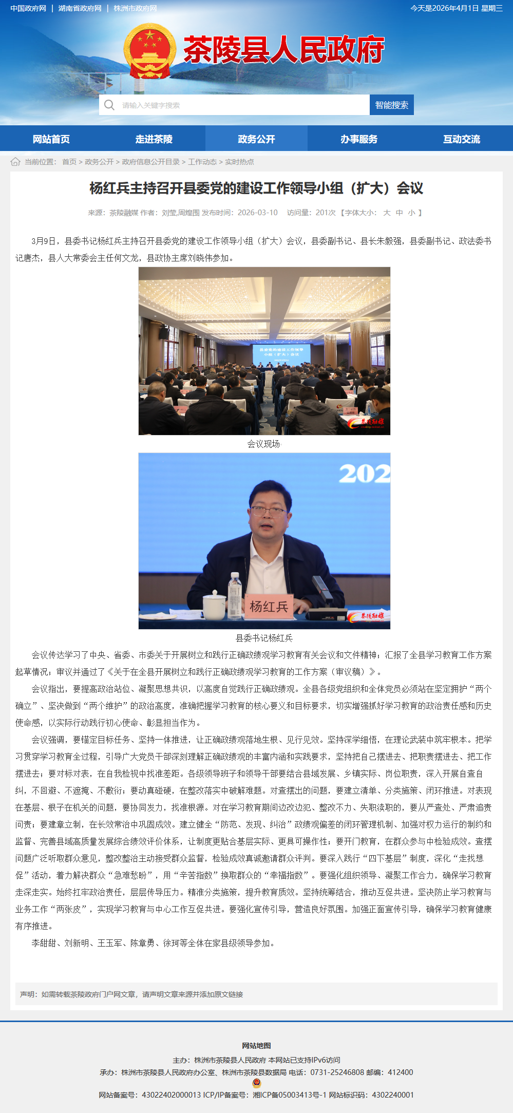 3月9日,县委书记杨红兵主持召开县委党的建设工作领导小组(扩大)会议,县委副书记、县长朱毅强,县委副书记、政法委书记唐杰,县人大常委会主任何文龙,县政协主席刘晓伟参加。