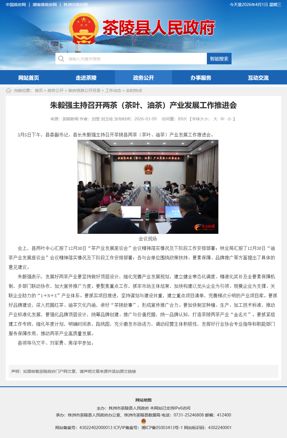 3月5日下午,县委副书记、县长朱毅强主持召开茶陵县两茶(茶叶、油茶)产业发展工作推进会。