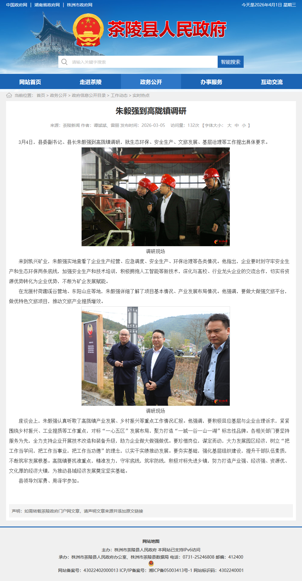 3月4日,县委副书记、县长朱毅强到高陇镇调研,就生态环保、安全生产、文旅发展、基层治理等工作提出具体要求。