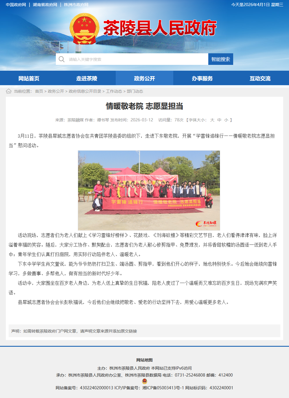 3月11日,茶陵县犀城志愿者协会在共青团茶陵县委的组织下,走进下东敬老院,开展“学雷锋追锋行——情暖敬老院志愿显担当”慰问活动。