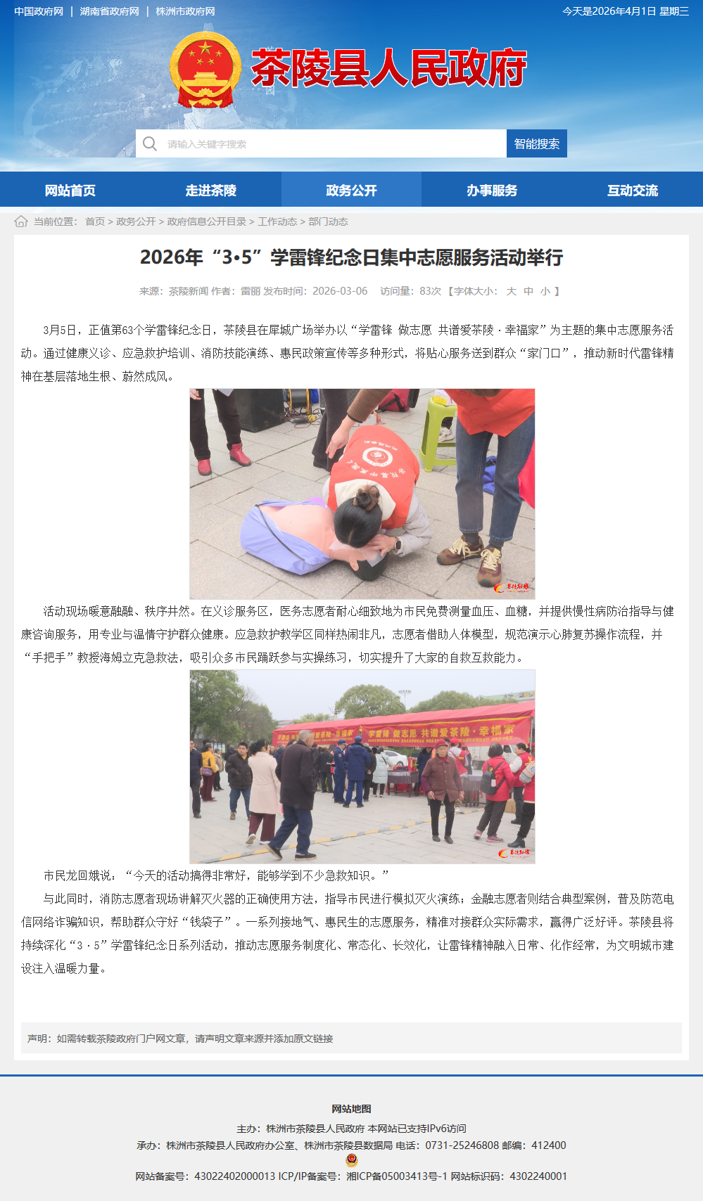 3月5日,正值第63个学雷锋纪念日,茶陵县在犀城广场举办以“学雷锋 做志愿 共谱爱茶陵·幸福家”为主题的集中志愿服务活动。通过健康义诊、应急救护培训、消防技能演练、惠民政策宣传等多种形式,将贴心服务送到群众“家门口”,推动新时代雷锋精神在基层落地生根、蔚然成风。