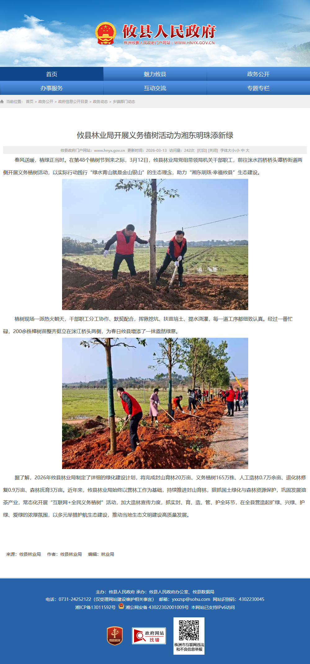 据了解,2026年攸县林业局制定了详细的绿化建设计划,将完成封山育林20万亩、义务植树165万株、人工造林0.7万余亩、退化林修复0.9万亩、森林抚育3万亩。近年来,攸县林业局始终以营林工作为基础,持续推进封山育林,狠抓国土绿化与森林资源保护,巩固发展油茶产业,常态化开展“互联网 全民义务植树”活动,加大造林宣传力度,抓实封、育、造、管、护全环节,在全县营造起扩绿、兴绿、护绿、爱绿的浓厚氛围,以多元举措护航生态建设,推动当地生态文明建设高质量发展。