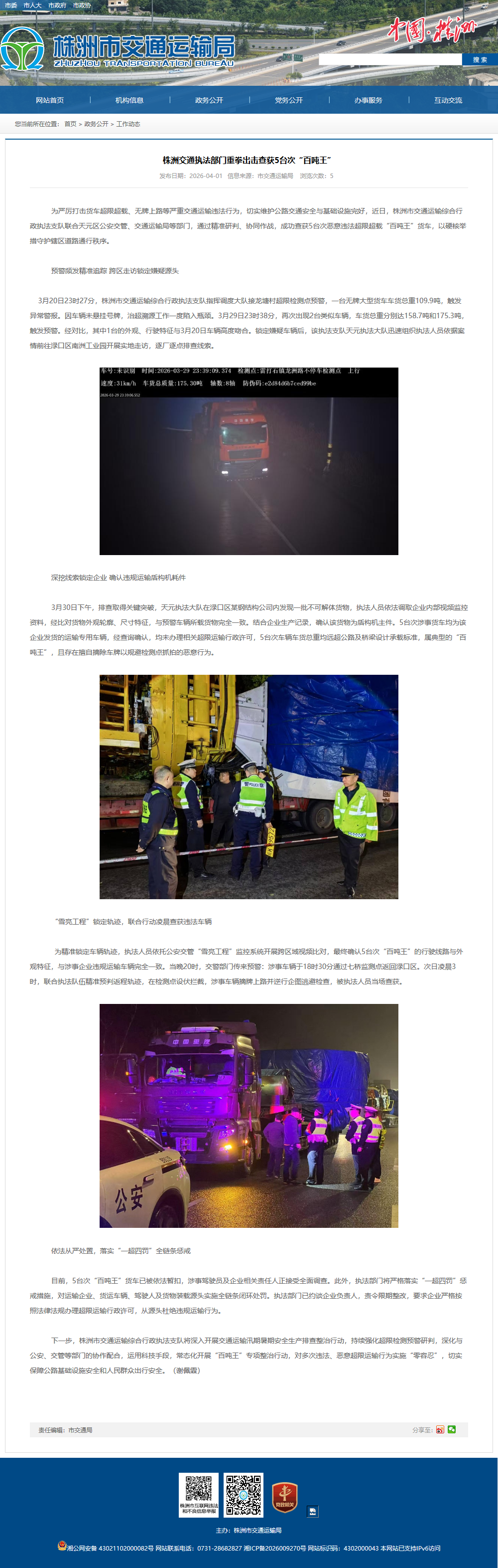 下一步,株洲市交通运输综合行政执法支队将深入开展交通运输汛期暑期安全生产排查整治行动,持续强化超限检测预警研判,深化与公安、交管等部门的协作配合,运用科技手段,常态化开展“百吨王”专项整治行动,对多次违法、恶意超限运输行为实施“零容忍”,切实保障公路基础设施安全和人民群众出行安全。(谢佩霖)