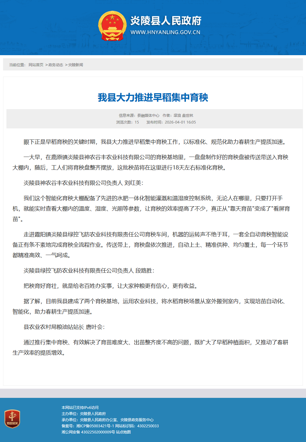 眼下正是早稻育秧的关键时期,我县大力推进早稻集中育秧工作,以标准化、规范化助力春耕生产提质加速。