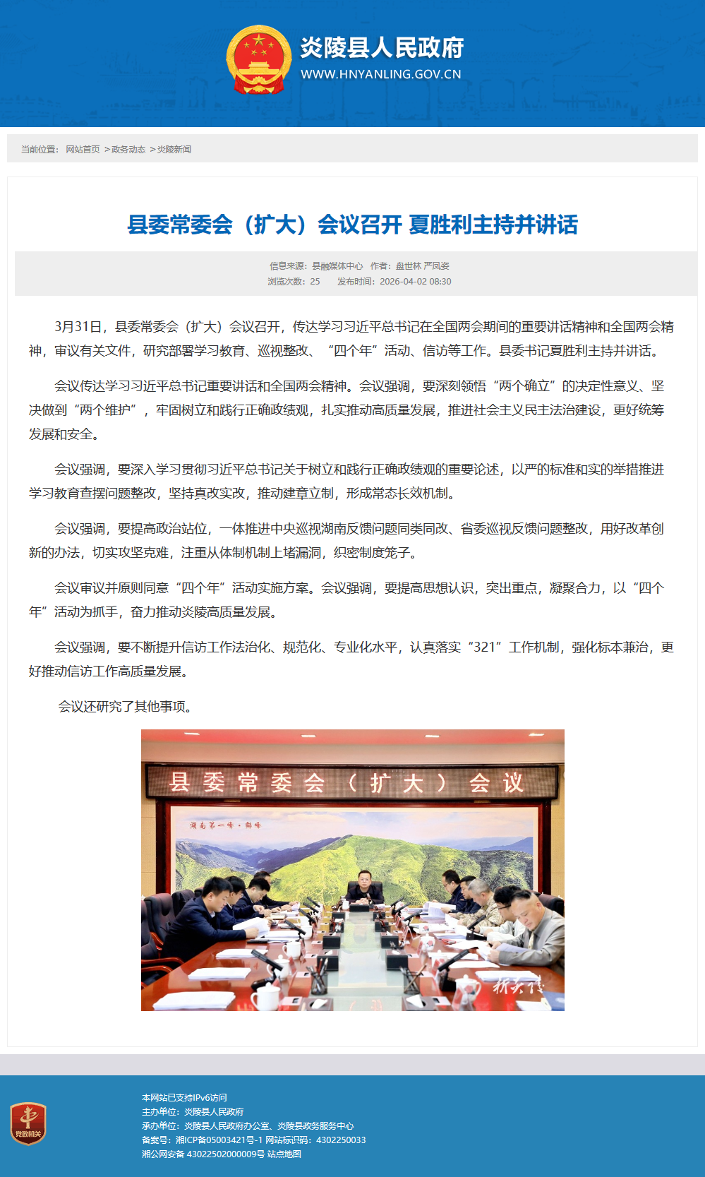 会议审议并原则同意“四个年”活动实施方案。会议强调,要提高思想认识,突出重点,凝聚合力,以“四个年”活动为抓手,奋力推动炎陵高质量发展。