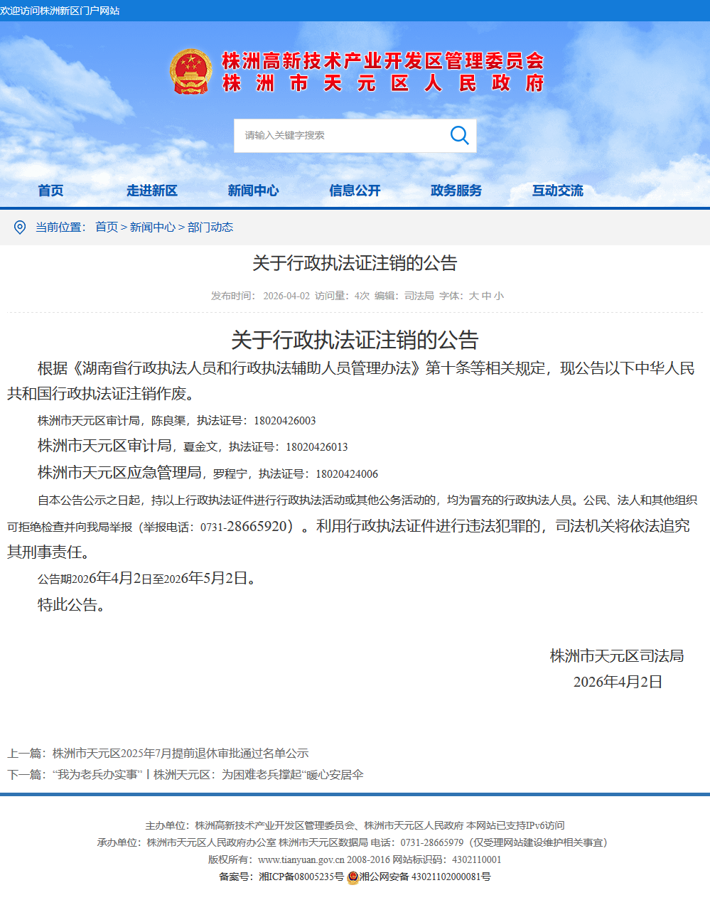 时间:2026-04-02 10:01:33 来源: 株洲市天元区人民政府 来源截图