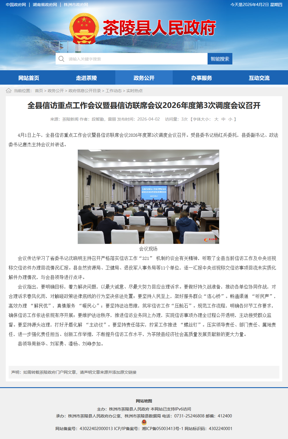 会议指出,要明确目标,着力解决问题,以最大诚意、尽最大努力回应合理诉求。要做好持久战准备,推动各单位协同作战,对合理诉求春风化雨,对触碰政策法律底线的行为坚决依法处置;要坚持人民至上,架好服务群众“连心桥”。畅通渠道 “听民声”,高效办理 “解民忧”,真情服务 “暖民心”;要坚持法治思维,筑牢信访工作“压舱石”。规范工作流程,明确各环节工作要求,确保信访工作依法依规有序开展;要维护法治秩序,推进信访业务网上办理,实现信访事项办理全过程公开透明,主动接受群众监督。要坚持源头治理,打好矛盾化解 “主动仗”。要坚持责任落实,拧紧工作推进 “螺丝钉”。压实领导责任、部门责任、属地责任,进一步强化责任担当、创新工作举措,不断提升信访工作水平,为茶陵县经济社会高质量发展贡献新的更大力量。