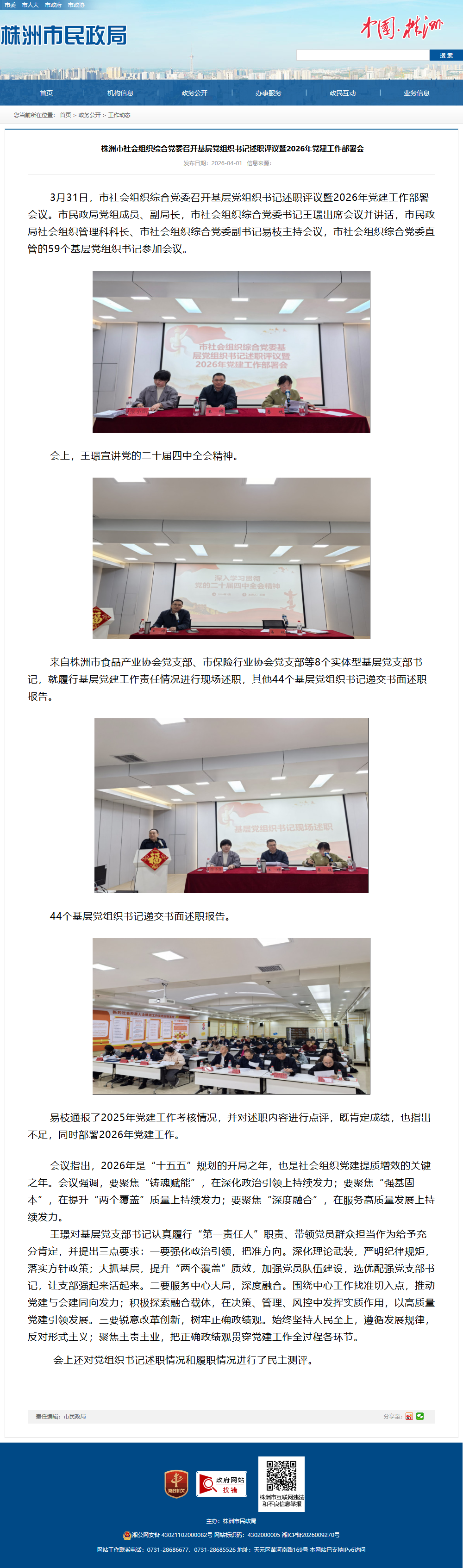 3月31日,市社会组织综合党委召开基层党组织书记述职评议暨2026年党建工作部署会议。市民政局党组成员、副局长,市社会组织综合党委书记王璟出席会议并讲话,市民政局社会组织管理科科长、市社会组织综合党委副书记易枝主持会议,市社会组织综合党委直管的59个基层党组织书记参加会议。