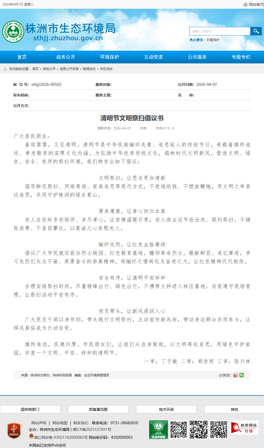 倡导鲜花祭扫、网络寄语、家庭追思等现代方式,不焚烧纸钱、不燃放鞭炮,用文明之举表达追思,共同守护株洲的绿水青山。