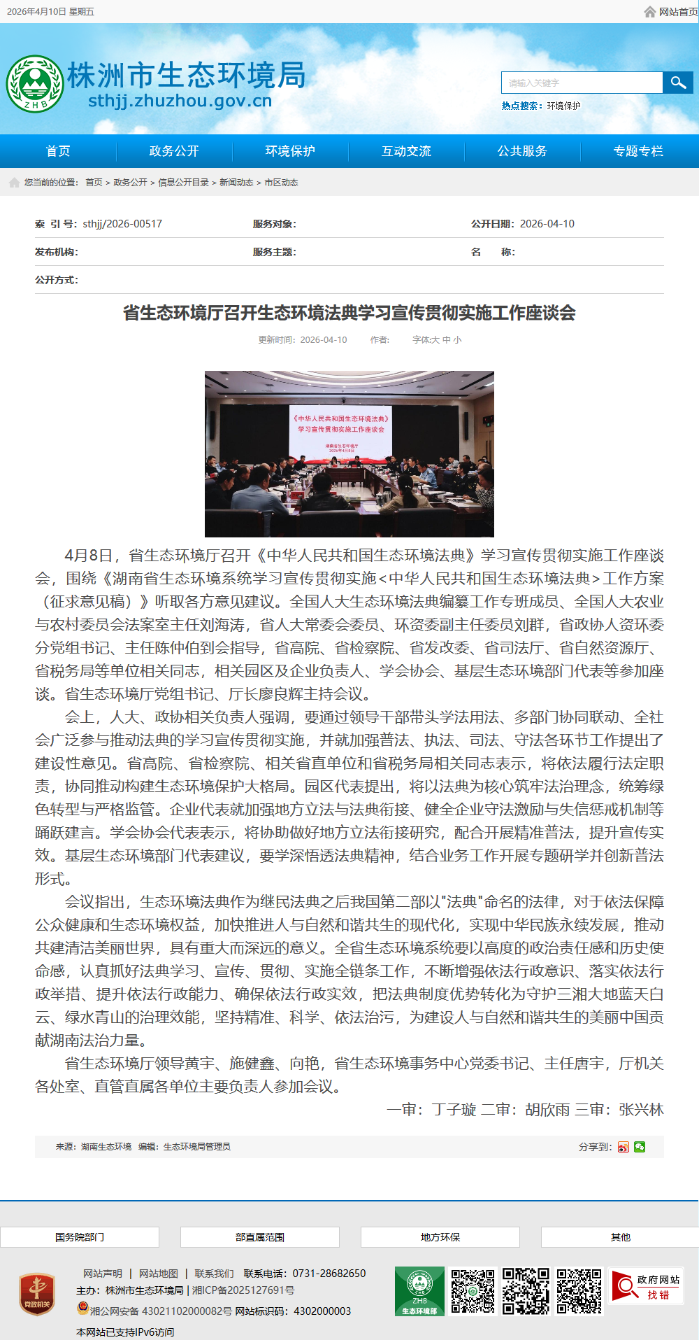 会议指出,生态环境法典作为继民法典之后我国第二部以"法典"命名的法律,对于依法保障公众健康和生态环境权益,加快推进人与自然和谐共生的现代化,实现中华民族永续发展,推动共建清洁美丽世界,具有重大而深远的意义。全省生态环境系统要以高度的政治责任感和历史使命感,认真抓好法典学习、宣传、贯彻、实施全链条工作,不断增强依法行政意识、落实依法行政举措、提升依法行政能力、确保依法行政实效,把法典制度优势转化为守护三湘大地蓝天白云、绿水青山的治理效能,坚持精准、科学、依法治污,为建设人与自然和谐共生的美丽中国贡献湖南法治力量。
