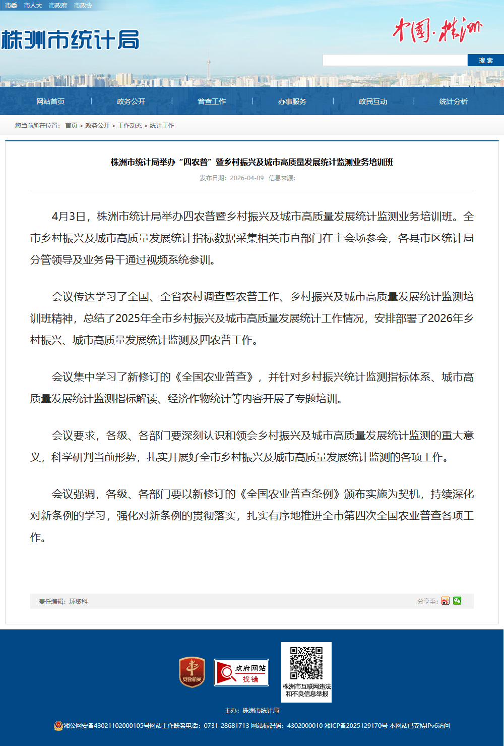 会议传达学习了全国、全省农村调查暨农普工作、乡村振兴及城市高质量发展统计监测培训班精神,总结了2025年全市乡村振兴及城市高质量发展统计工作情况,安排部署了2026年乡村振兴、城市高质量发展统计监测及四农普工作。
