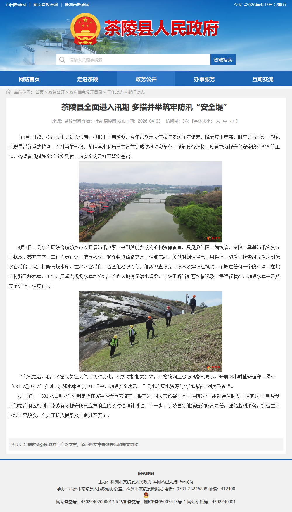 自4月1日起,株洲市正式进入汛期。根据中长期预测,今年汛期水文气象年景较往年偏差,降雨集中度高、时空分布不均,整体呈现旱涝并重的特点。面对当前形势,茶陵县水利局已在汛前完成防汛物资配备、设施设备巡检、应急能力提升和安全隐患排查等工作,各项备汛措施全部落实到位,为安全度汛打下坚实基础。