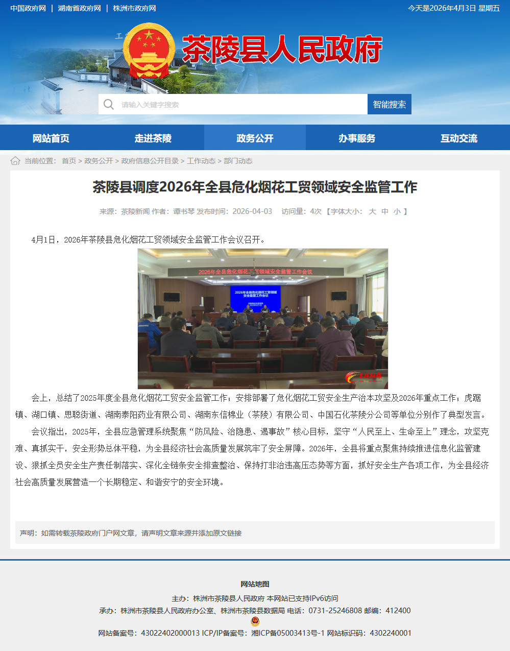 4月1日,2026年茶陵县危化烟花工贸领域安全监管工作会议召开。