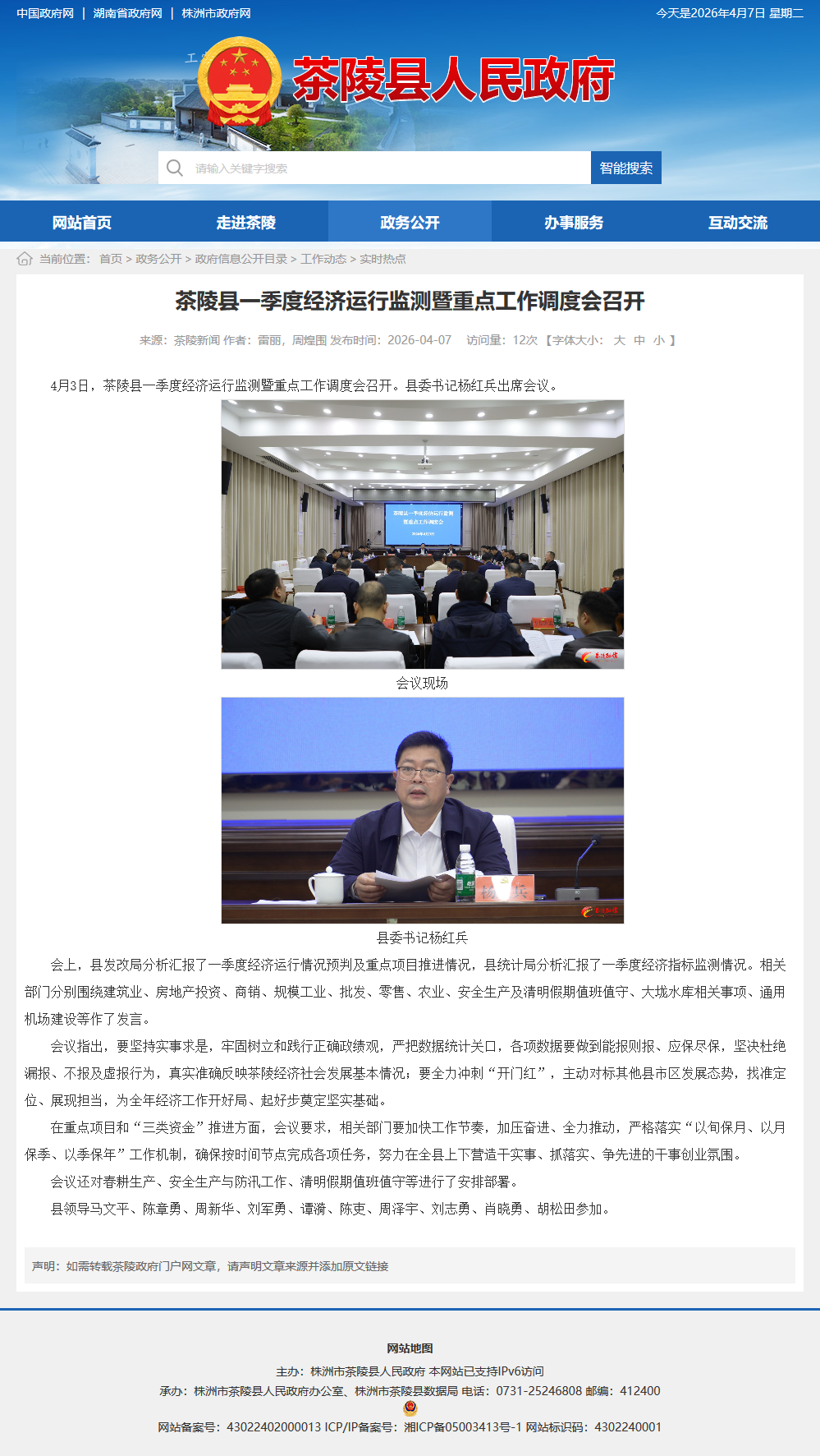 4月3日,茶陵县一季度经济运行监测暨重点工作调度会召开。县委书记杨红兵出席会议。