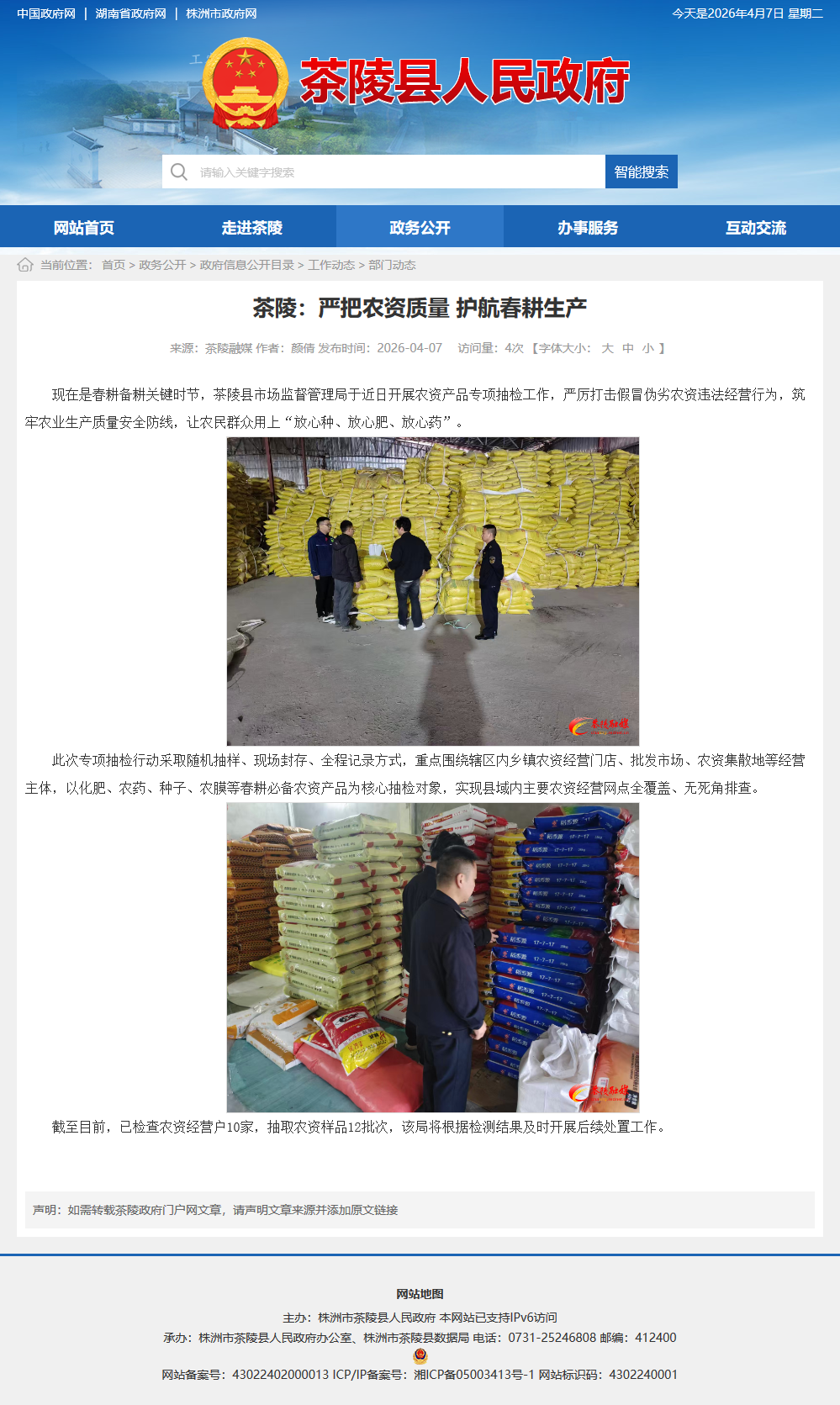 截至目前,已检查农资经营户10家,抽取农资样品12批次,该局将根据检测结果及时开展后续处置工作。