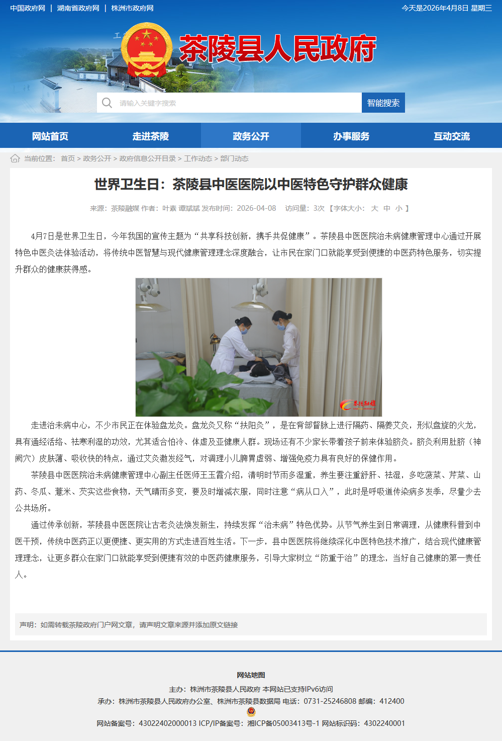 通过传承创新,茶陵县中医医院让古老灸法焕发新生,持续发挥“治未病”特色优势。从节气养生到日常调理,从健康科普到中医干预,传统中医药正以更便捷、更实用的方式走进百姓生活。下一步,县中医医院将继续深化中医特色技术推广,结合现代健康管理理念,让更多群众在家门口就能享受到便捷有效的中医药健康服务,引导大家树立“防重于治”的理念,当好自己健康的第一责任人。