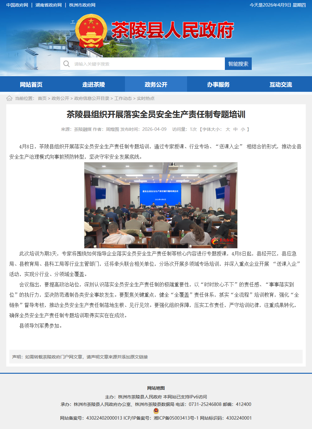 4月8日,茶陵县组织开展落实全员安全生产责任制专题培训,通过专家授课、行业专场、“送课入企” 相结合的形式,推动全县安全生产治理模式向事前预防转型,坚决守牢安全发展底线。