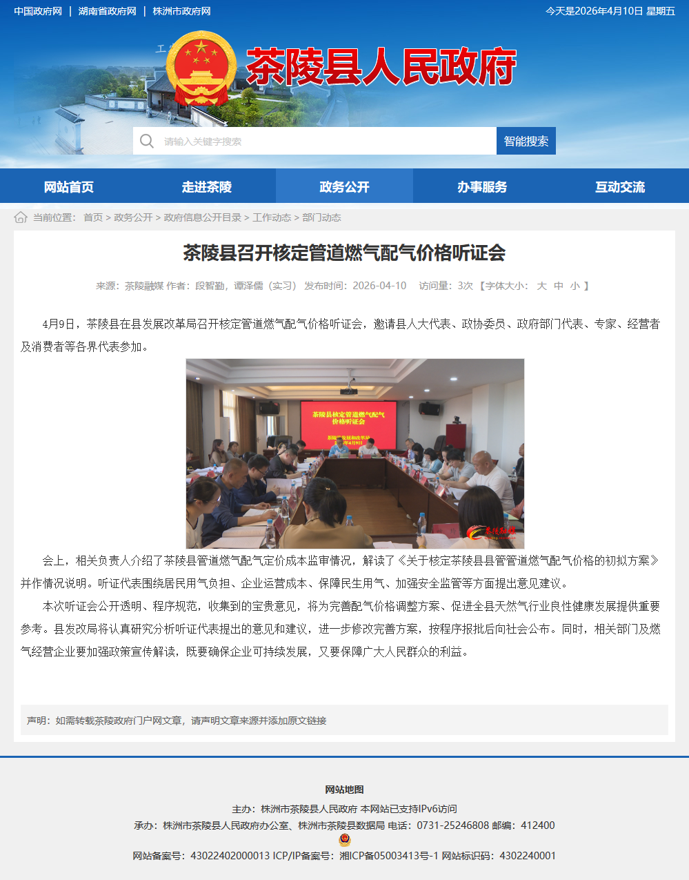 4月9日,茶陵县在县发展改革局召开核定管道燃气配气价格听证会,邀请县人大代表、政协委员、政府部门代表、专家、经营者及消费者等各界代表参加。