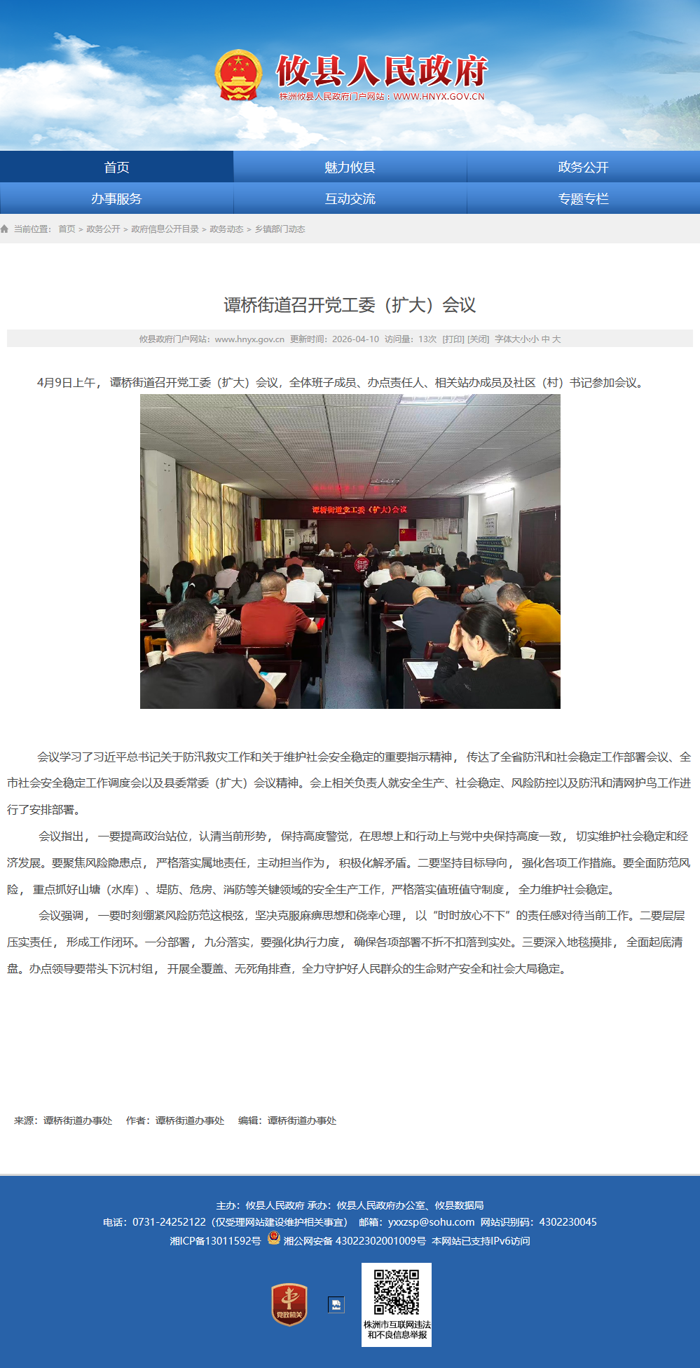 会议指出,一要提高政治站位,认清当前形势,保持高度警觉,在思想上和行动上与党中央保持高度一致,切实维护社会稳定和经济发展。要聚焦风险隐患点,严格落实属地责任,主动担当作为,积极化解矛盾。二要坚持目标导向,强化各项工作措施。要全面防范风险,重点抓好山塘(水库)、堤防、危房、消防等关键领域的安全生产工作,严格落实值班值守制度,全力维护社会稳定。