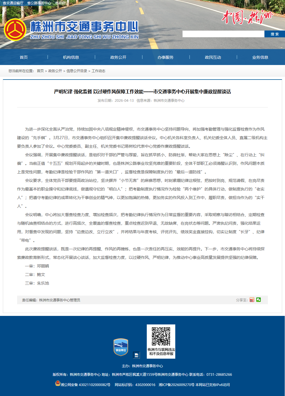 此次廉政提醒谈话,既是一次纪律的再提醒、作风的再锤炼,也是一次责任的再压实、效能的再提升。下一步,市交通事务中心将持续探索廉政教育新形式,常态化开展谈心谈话,加大监督检查力度,以过硬作风、严明纪律,为推动中心事业高质量发展提供坚强的纪律保障。