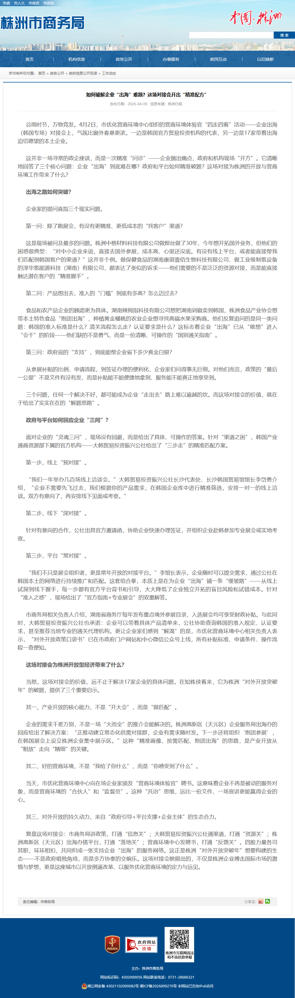 这并非一场寻常的政企座谈,而是一次精准“问诊”——企业抛出痛点,政府和机构现场“开方”。它清晰地回答了三个核心问题:企业“出海”到底难在哪?政府和平台如何精准破题?这场对接为株洲的开放与营商环境工作带来了什么?