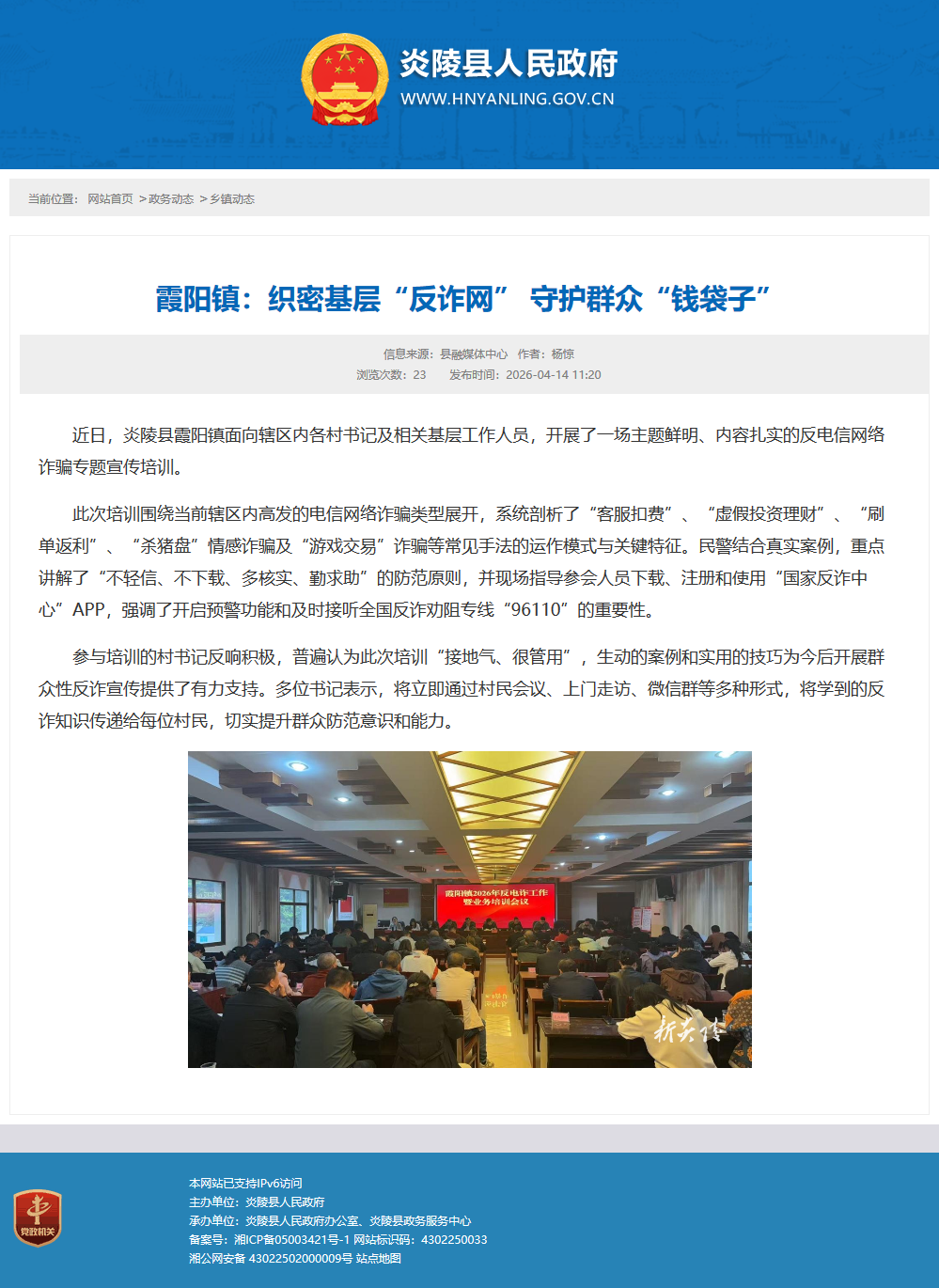 近日,炎陵县霞阳镇面向辖区内各村书记及相关基层工作人员,开展了一场主题鲜明、内容扎实的反电信网络诈骗专题宣传培训。