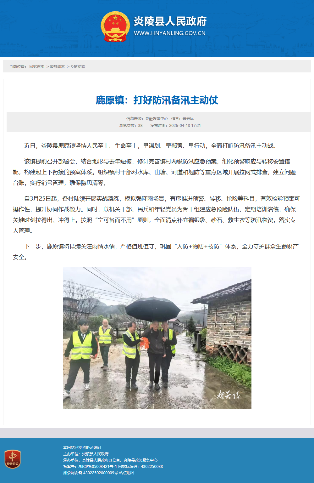 近日,炎陵县鹿原镇坚持人民至上、生命至上,早谋划、早部署、早行动,全面打响防汛备汛主动战。