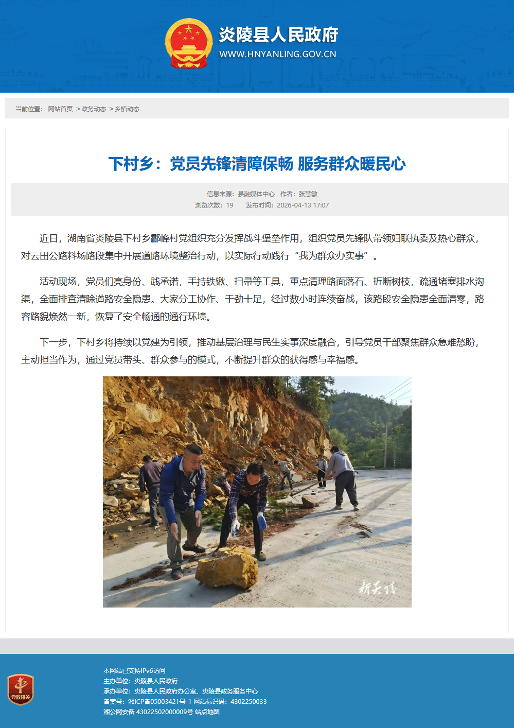 近日,湖南省炎陵县下村乡酃峰村党组织充分发挥战斗堡垒作用,组织党员先锋队带领妇联执委及热心群众,对云田公路料场路段集中开展道路环境整治行动,以实际行动践行“我为群众办实事”。