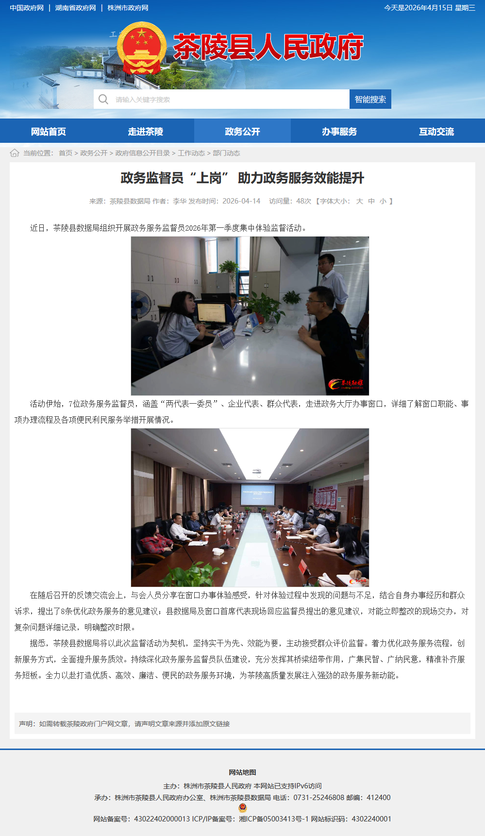 据悉,茶陵县数据局将以此次监督活动为契机,坚持实干为先、效能为要,主动接受群众评价监督。着力优化政务服务流程,创新服务方式,全面提升服务质效。持续深化政务服务监督员队伍建设,充分发挥其桥梁纽带作用,广集民智、广纳民意,精准补齐服务短板。全力以赴打造优质、高效、廉洁、便民的政务服务环境,为茶陵高质量发展注入强劲的政务服务新动能。