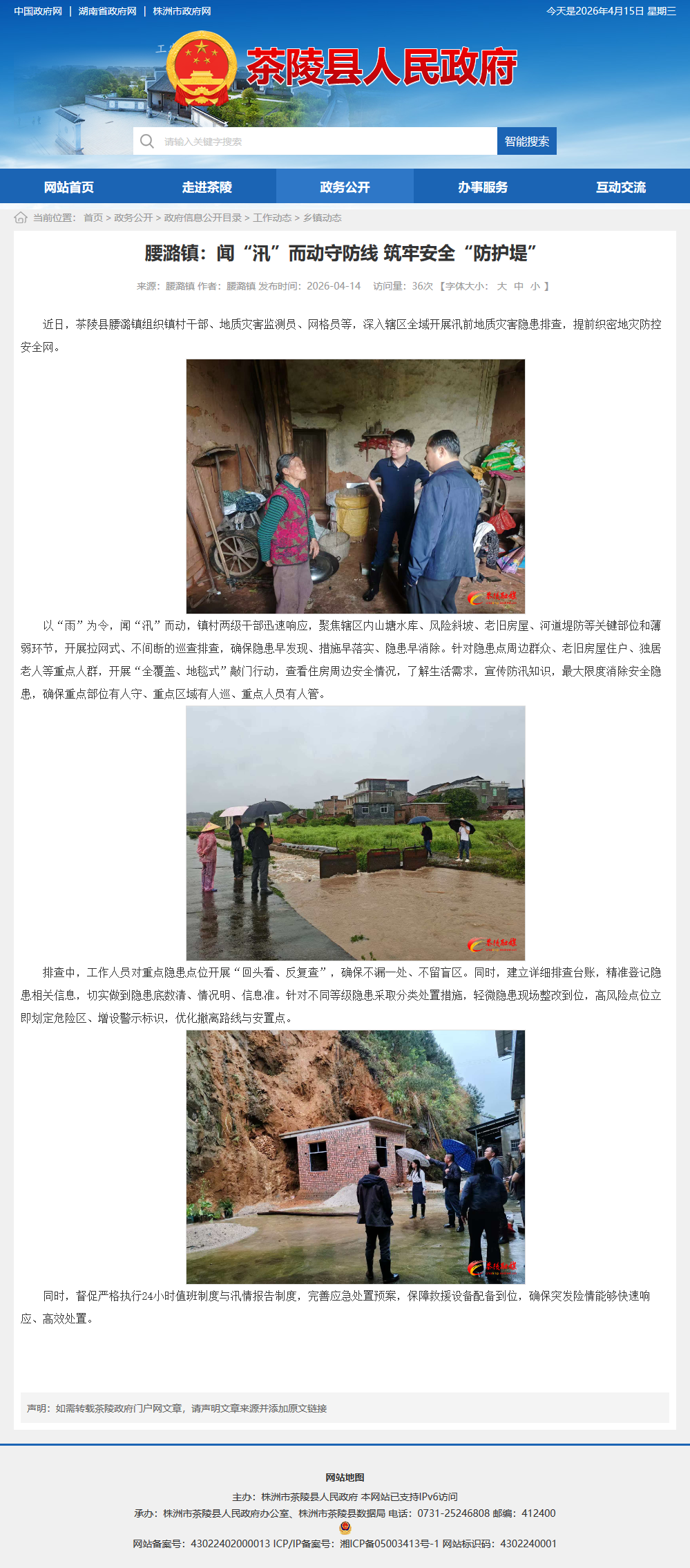 近日,茶陵县腰潞镇组织镇村干部、地质灾害监测员、网格员等,深入辖区全域开展汛前地质灾害隐患排查,提前织密地灾防控安全网。
